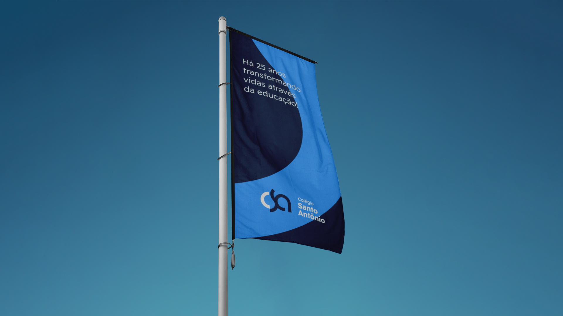 O Colégio Santo Antônio é uma escola voltada a educação infantil e fundamental, com o propósito de transformar vidas por meio da educação. Toda a identidade visual foi pensada em formas fluidas, em especial o logotipo, no qual todo o desdobramento da marca se dá por conta de seu formato.