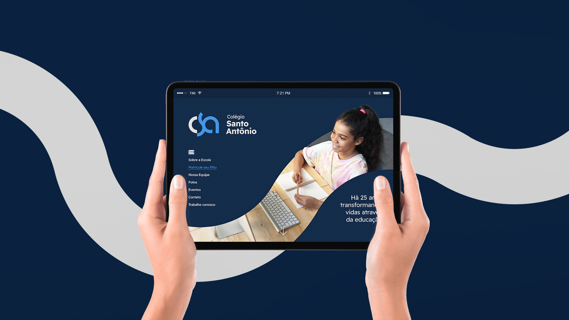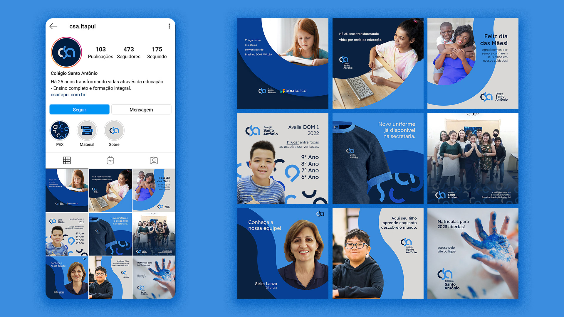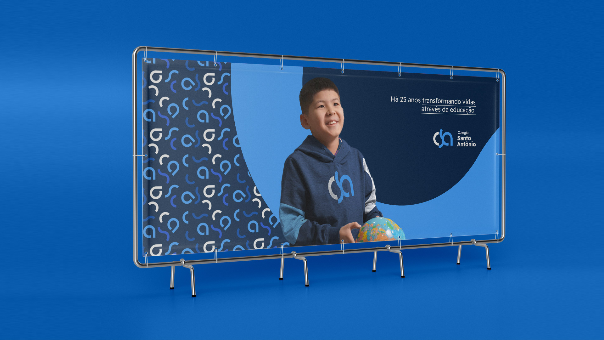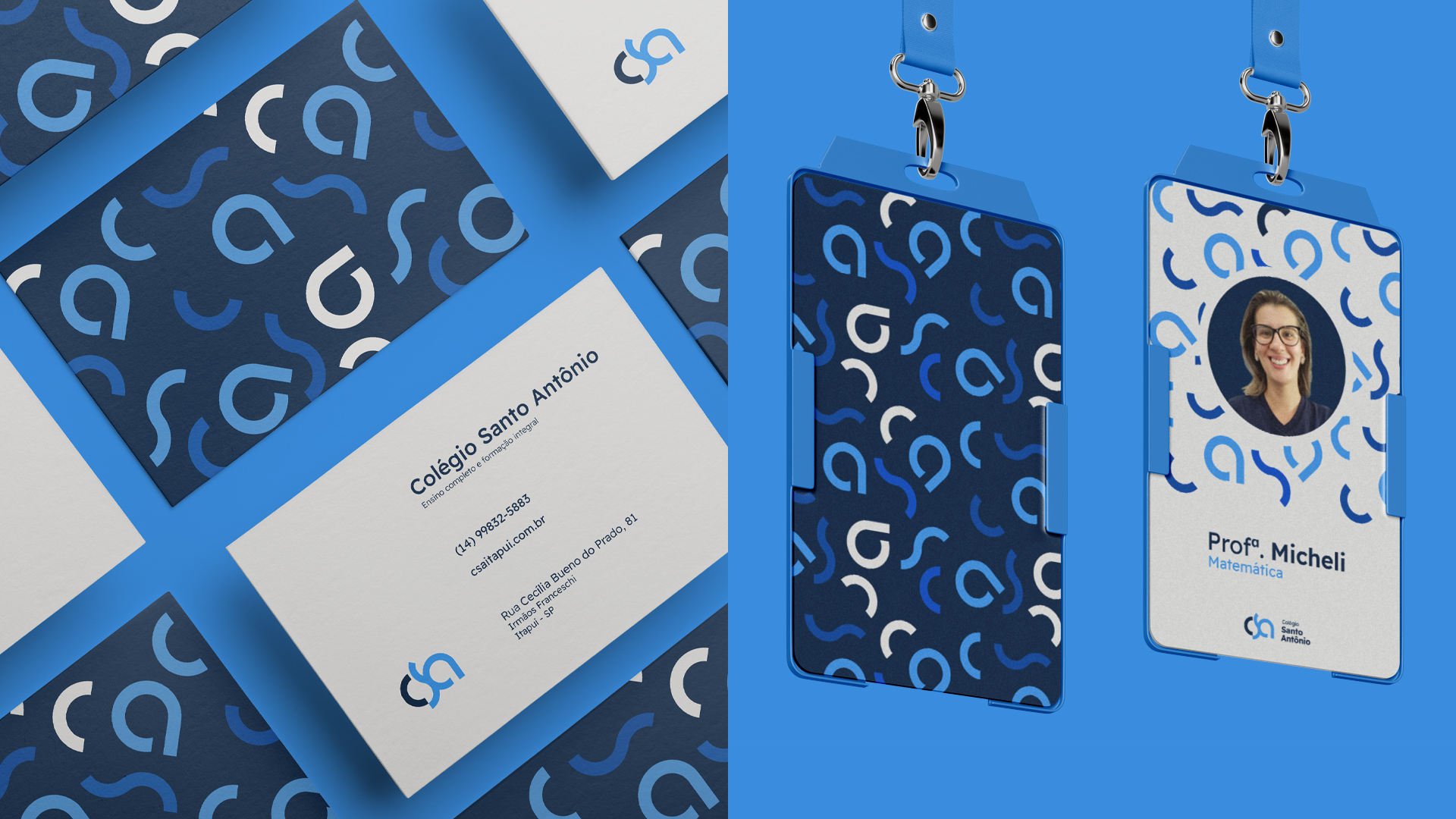 Colégio Santo Antônio is a school focused on early childhood and elementary education, with the purpose of transforming lives through education. The entire visual identity was designed in fluid forms, especially the logo, in which the entire development of the brand is due to its format.