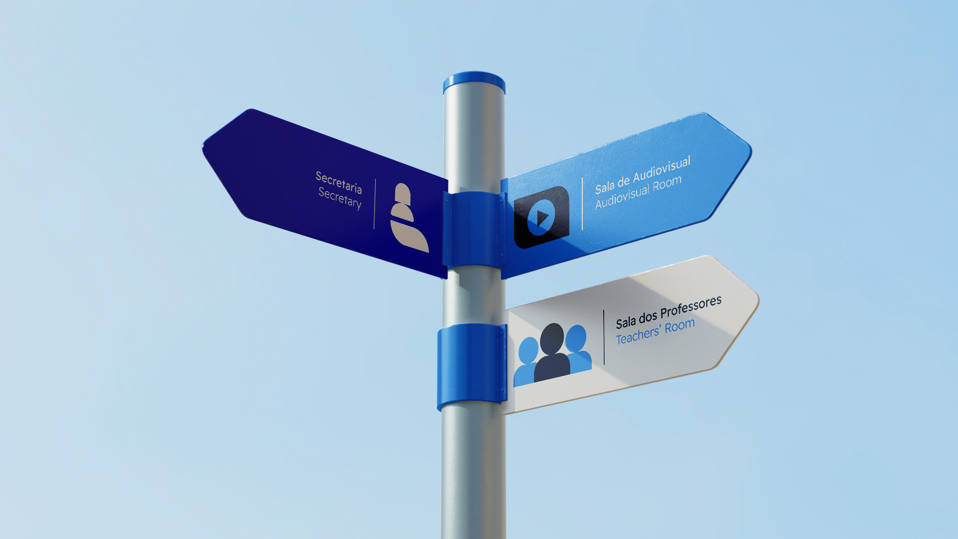 A marca foi reposicionada de forma a transmitir confiança, segurança e seriedade aos pais, ao mesmo tempo que transmite descontração e curiosidade aos alunos.